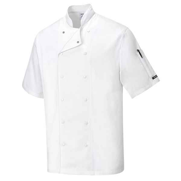Practical stylish and hardwearing the Aberdeen Jacket has an array of useful features including: a handy sleeve pocket 6 rows of white press studs MeshAir aerated mesh underarms and shaped back panels for a contemporary fit. The durable fabric allows the garment to keep its shape wash after wash.
