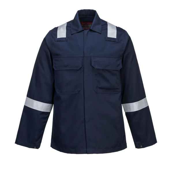 This Bizweld Iona Jacket offers superb comfort protection and functionality. Design features include concealed stud front closure two chest pockets with flaps concealed mobile phone pocket and flame resistant reflective tape on the shoulders and sleeves for ultimate visibility.