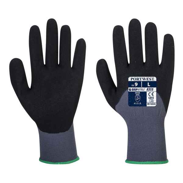 The A353 is an enhanced addition to the DermiFlex range. 3/4’s are dipped with nitrile foam which gives more protection while maintaining breathability. An addition of micro dots to the palm area provides maximum grip.