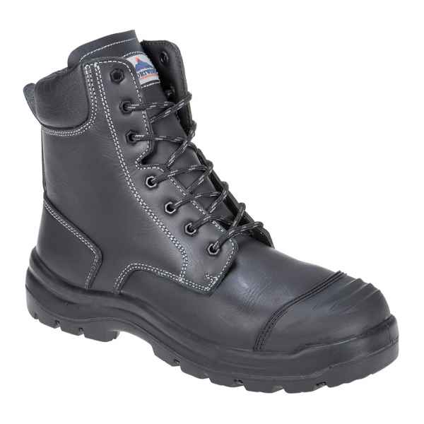 Complete protection the full grain leather upper provides a barrier to all weather conditions. High lace up style with a robust zip for a comfortable fit and reliable support in rugged environments. Injected PU/Rubber outsole for supreme grip and energy absorption
