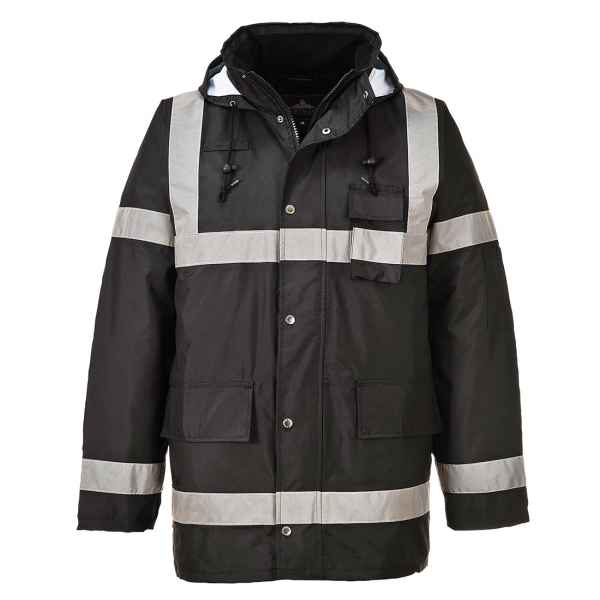The Iona Lite Jacket offers added visibility in dull conditions. Features include two large pockets an easily accessible external mobile phone/radio pocket to the chest and a drawcord hood and hem for a snug fit.