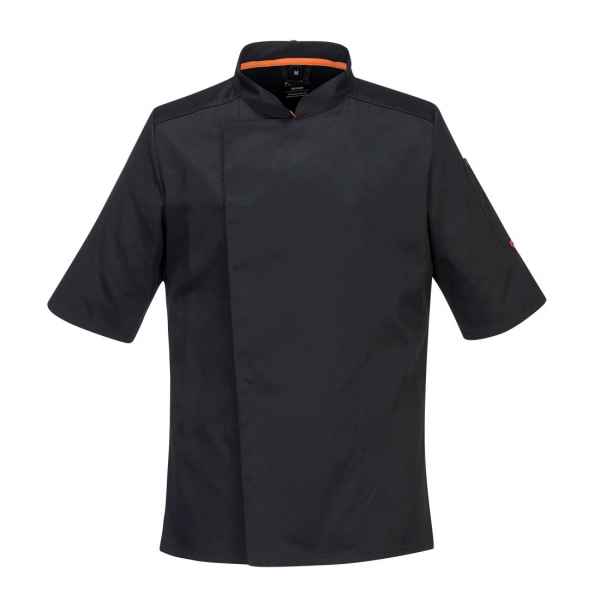 Designed with MeshAir Pro mesh aerated panels the C738 offers an ideal solution when it gets hot in the kitchen. Featuring highlighted trims double breasted concealed front fastening and pen pocket. This chefs jacket has been designed for style and practicality.