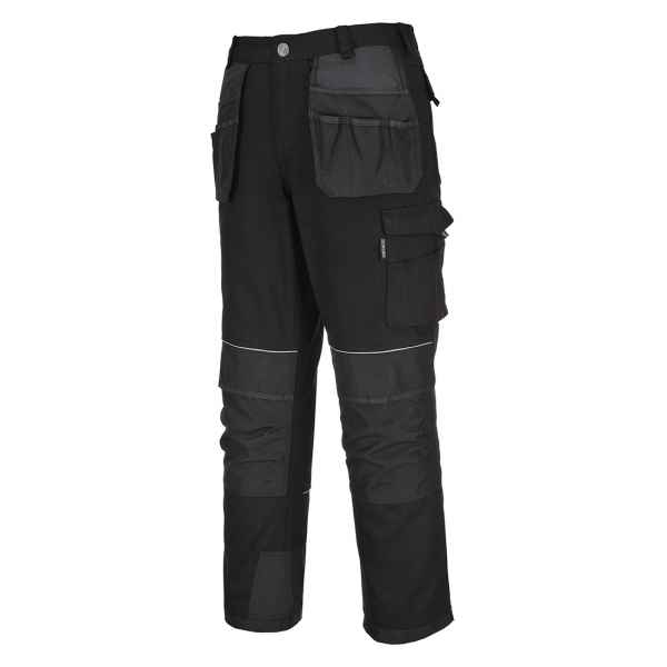 Amazing robust canvas work trouser with Oxford fabric reinforcement at key abrasion points. This comfortable cut trouser is packed with features including triple stitched critical seams tuck-away holster pockets articulated kneepad pockets with deep fail-safe secure covers and multiple pockets to provide storage for phones and tools.